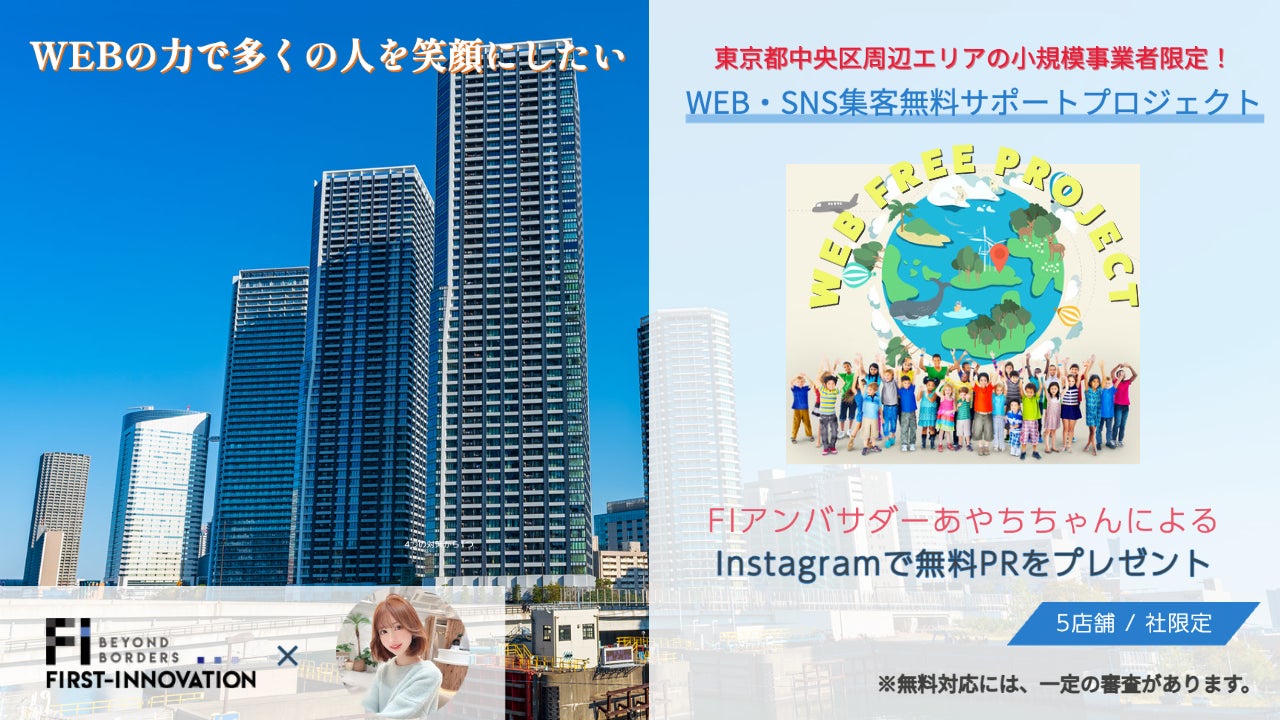 株式会社ファーストイノベーション(本社:東京都中央区、以下ファーストイノベーション)は、本社の近隣エリア(晴海・勝どき・銀座・新橋・築地・月島・豊海・有明・豊洲・台場・東雲)にて、小規模事業者様のWEB施策を無料支援するプロジェクト「WEB Free Project」の第三弾キャンペーンとして