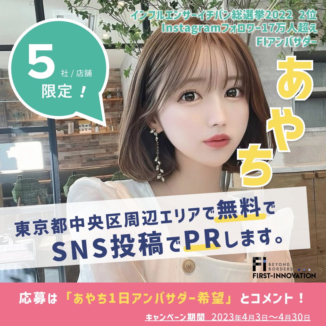 対策内容:FIアンバサダーあやち (@o.aya_0613)が東京都中央区または近隣エリアの店舗様・法人様を無料でPRいたします。