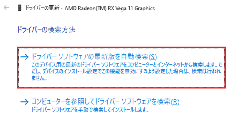 Step4:「ドライバー ソフトウェアの最新版を自動検索」を選択します。