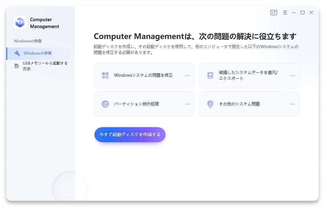 パソコンの操作に不慣れな方はパソコンのトラブルを自動修復する機能を持つPassFab Computer Managementがおすすめです。難しい操作をすることなくシンプルな画面を見ながら進めるだけでWindowsシステムを修復できる非常に使いやすい専門ツールです。