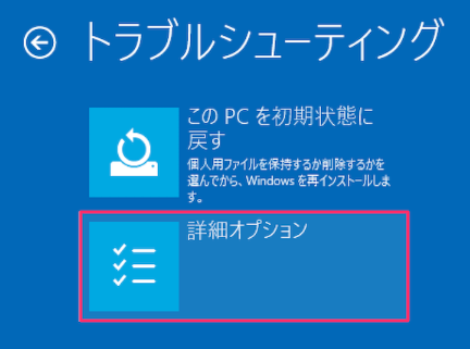 Step1:パソコンの強制終了と起動を繰り返して自動修復を表示後、「詳細オプション」をクリックします。