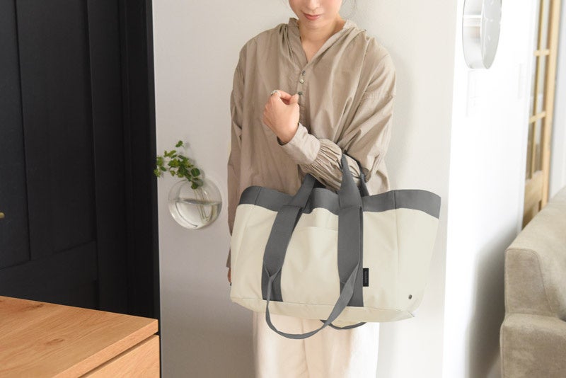 バッグ本体とハンドルの配色デザインがポイントの「ライトベージュ」と統一感のあるカラーリングの「ブラック」2色展開。