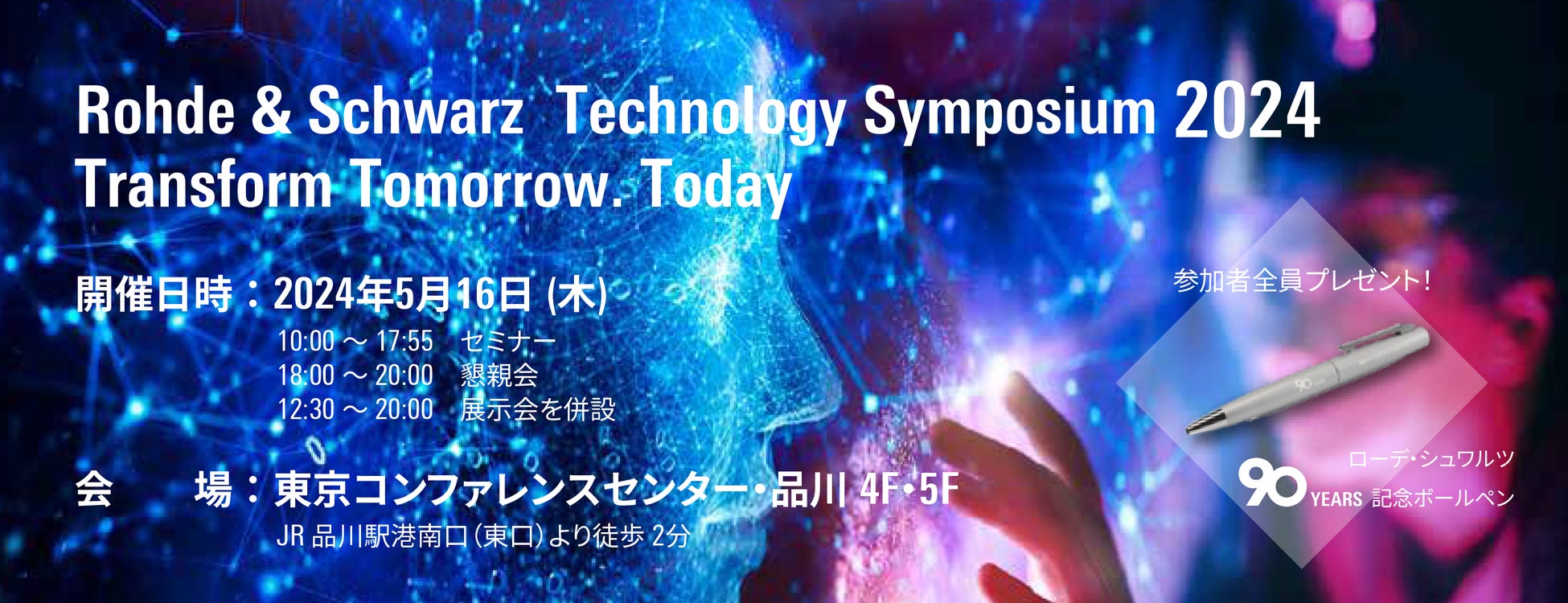 ローデ・シュワルツ・ジャパンは、この度創立90周年を記念する企画としてTechnology Symposium 2024 を開催する運びとなりました。本シンポジウムでは、各業界において深い知見をお持ちの方々をお招きし、最先端技術が実現する未来の姿を示していただくことで、皆さまのビジネスの将来的な道標となる情報や具体的な評価手法を提供します。