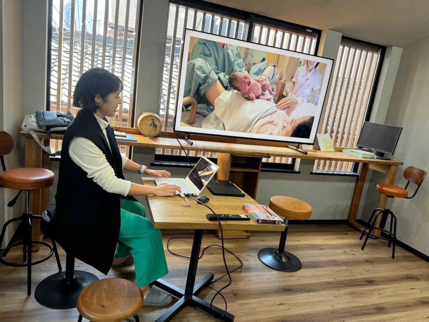 お腹の中で赤ちゃんが育っていく様子を映像で見るとともに、経腟分娩と帝王切開それぞれの出産の様子についても詳しく学びました。
