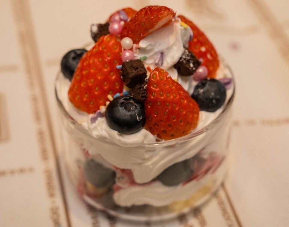 当日は、40名を超える小学生親子にご参加いただき、お子さまはコック帽子とコックコートを身に着けて、パティシエ気分でミニパフェつくりを体験しました。