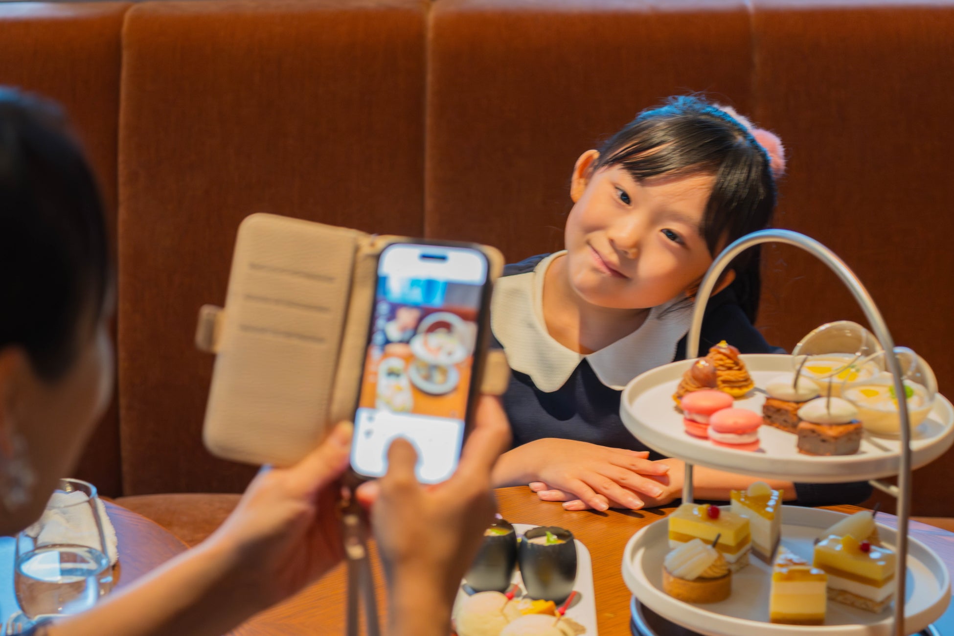 パフェつくりの後は、久屋大通公園の紅葉を臨むホテル内のラウンジで、お子さまが仕上げた世界にひとつだけのデザートを含むアフタヌーンティーを、親子でお楽しみいただきました。
