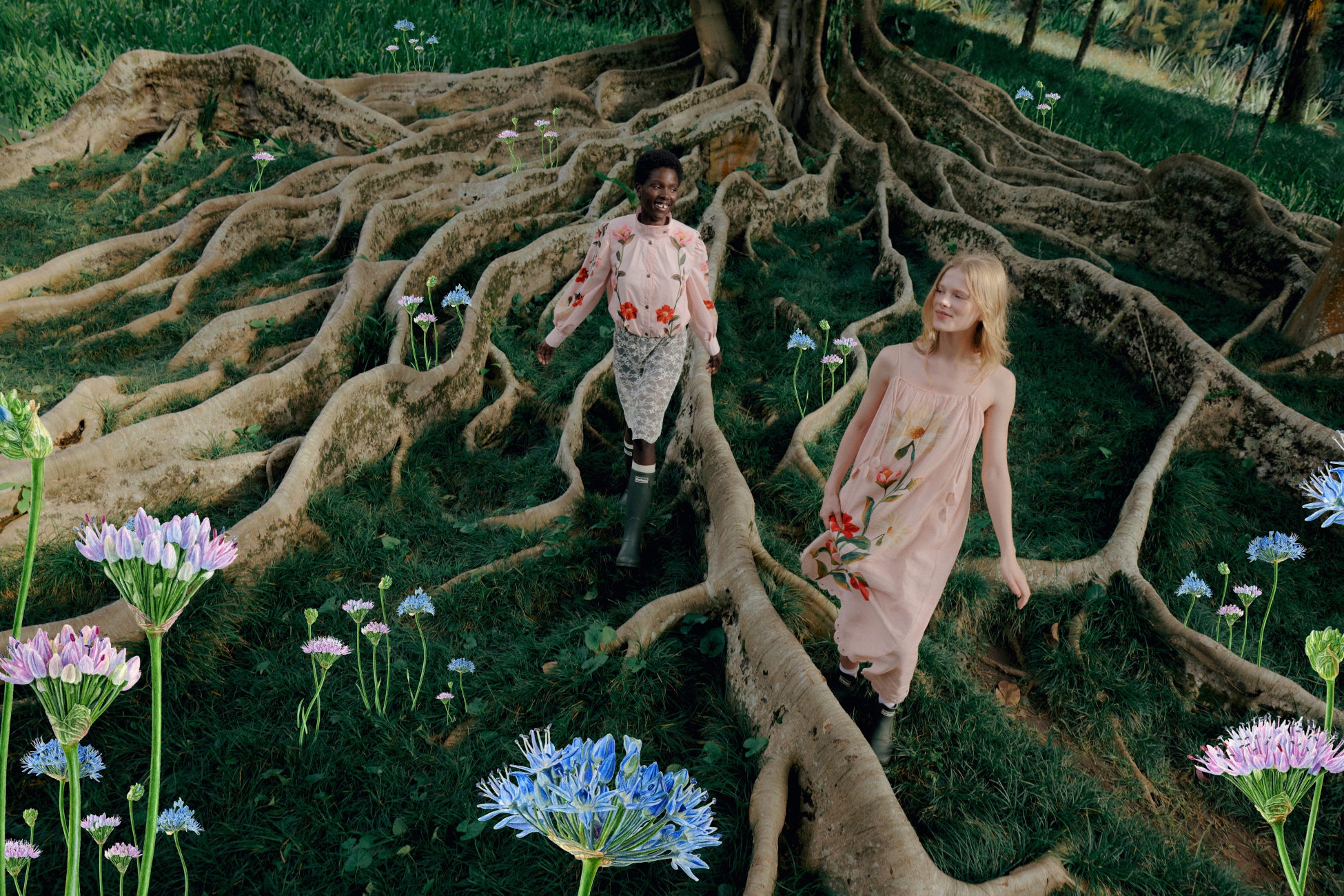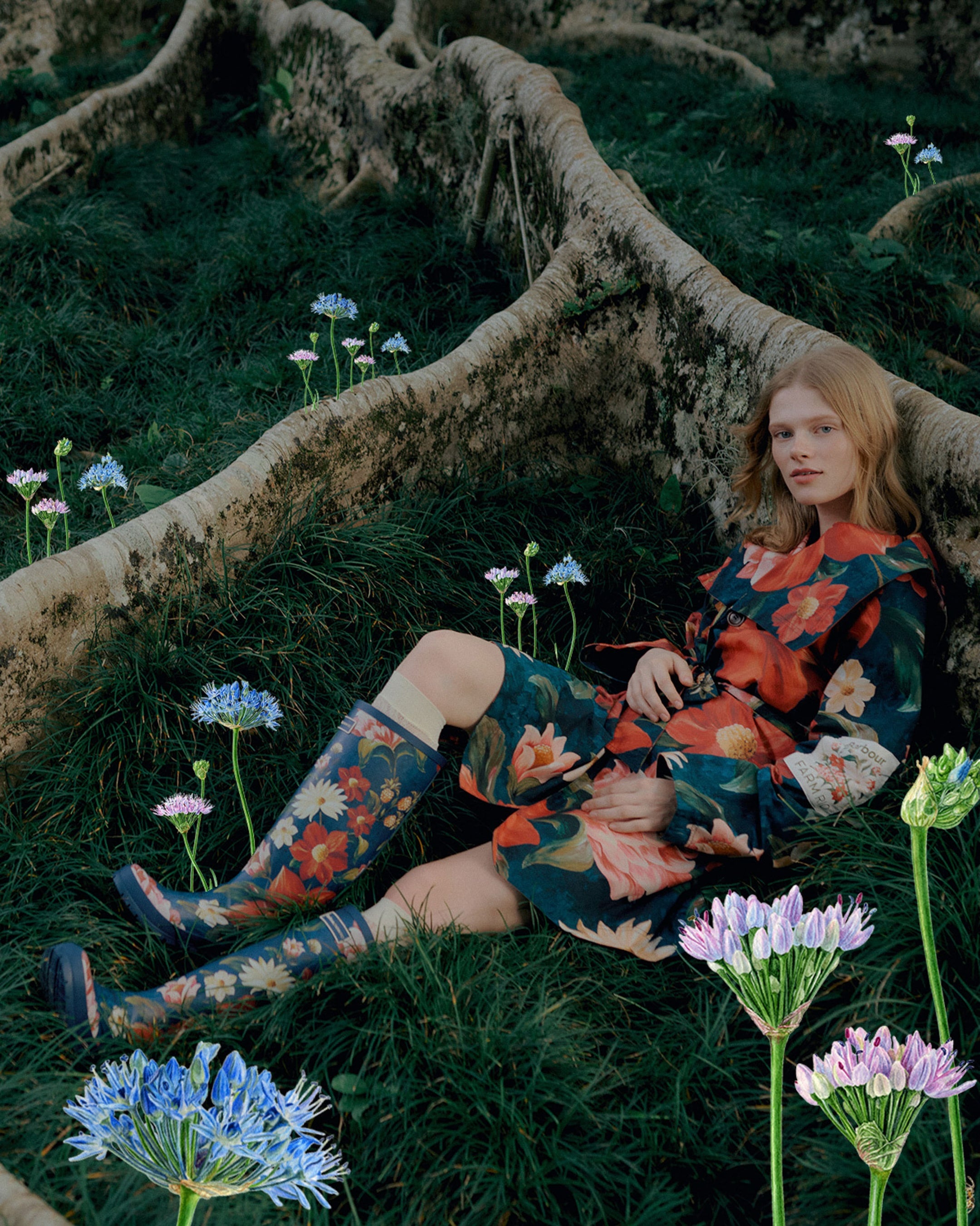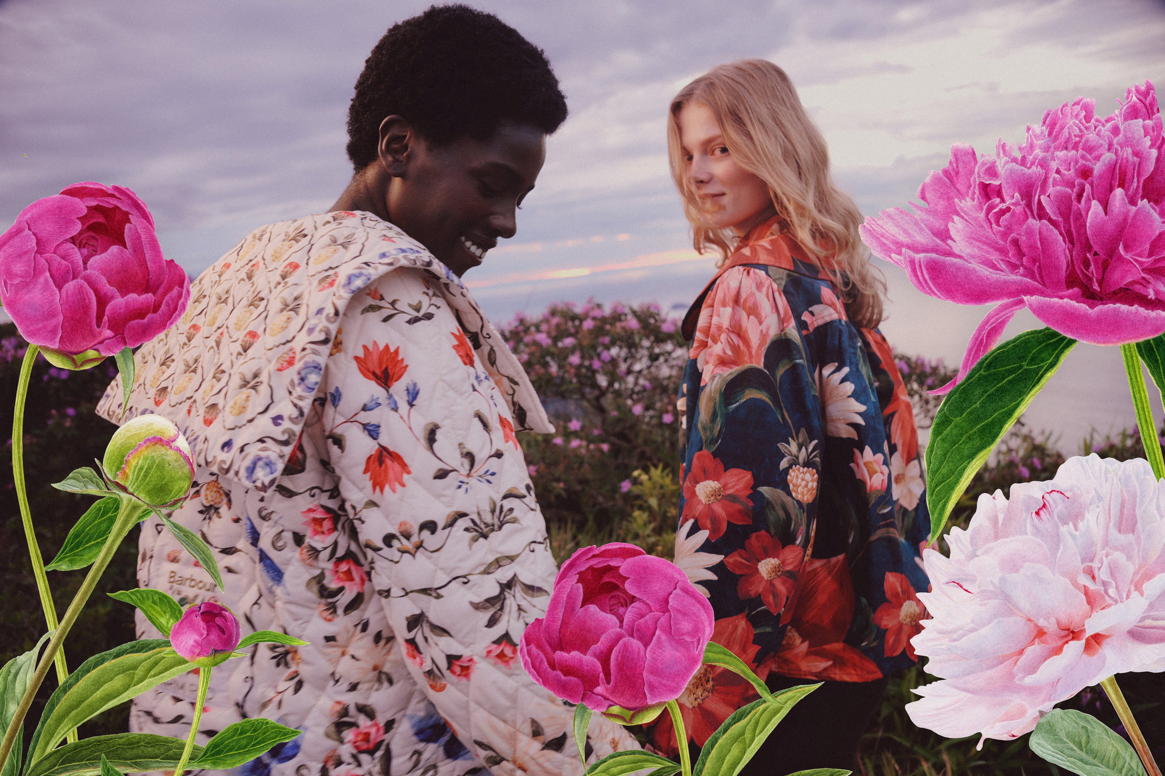 コレクションを彩るのは、Barbourの聖地であるイギリスのカントリーサイドに咲く可憐な野花たち。デイジーやコーンフラワーといったモチーフを、FARM Rioによるハンドペイントで再解釈しています。