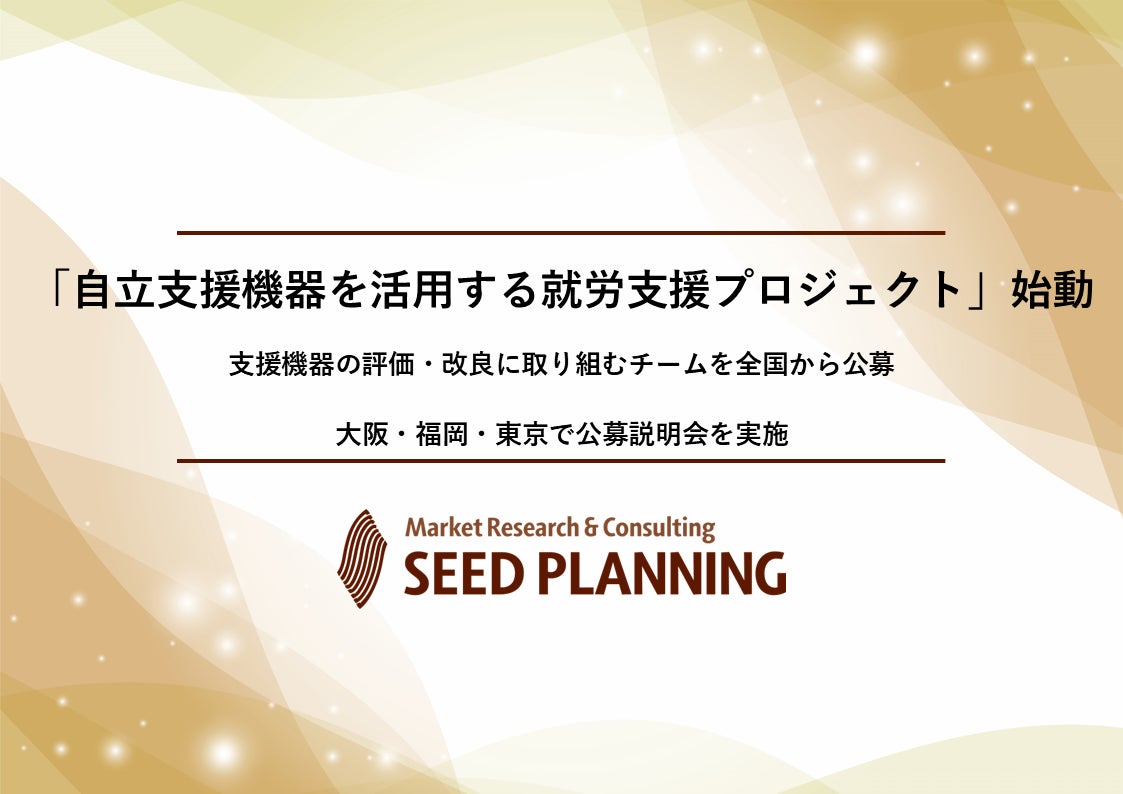 株式会社シード・プランニング(本社:東京都文京区、代表取締役社長:梅田 佳夫)は公益財団法人テクノエイド協会との連携のもと、厚生労働省より助成を受け、「自立支援機器を活用する就労支援プロジェクト」を実施します。