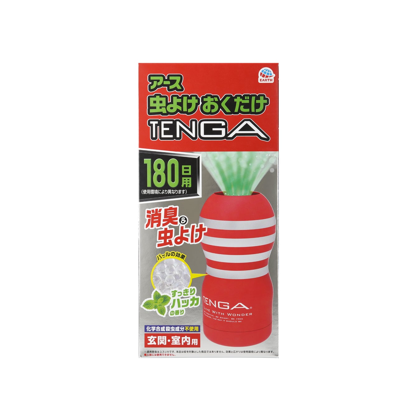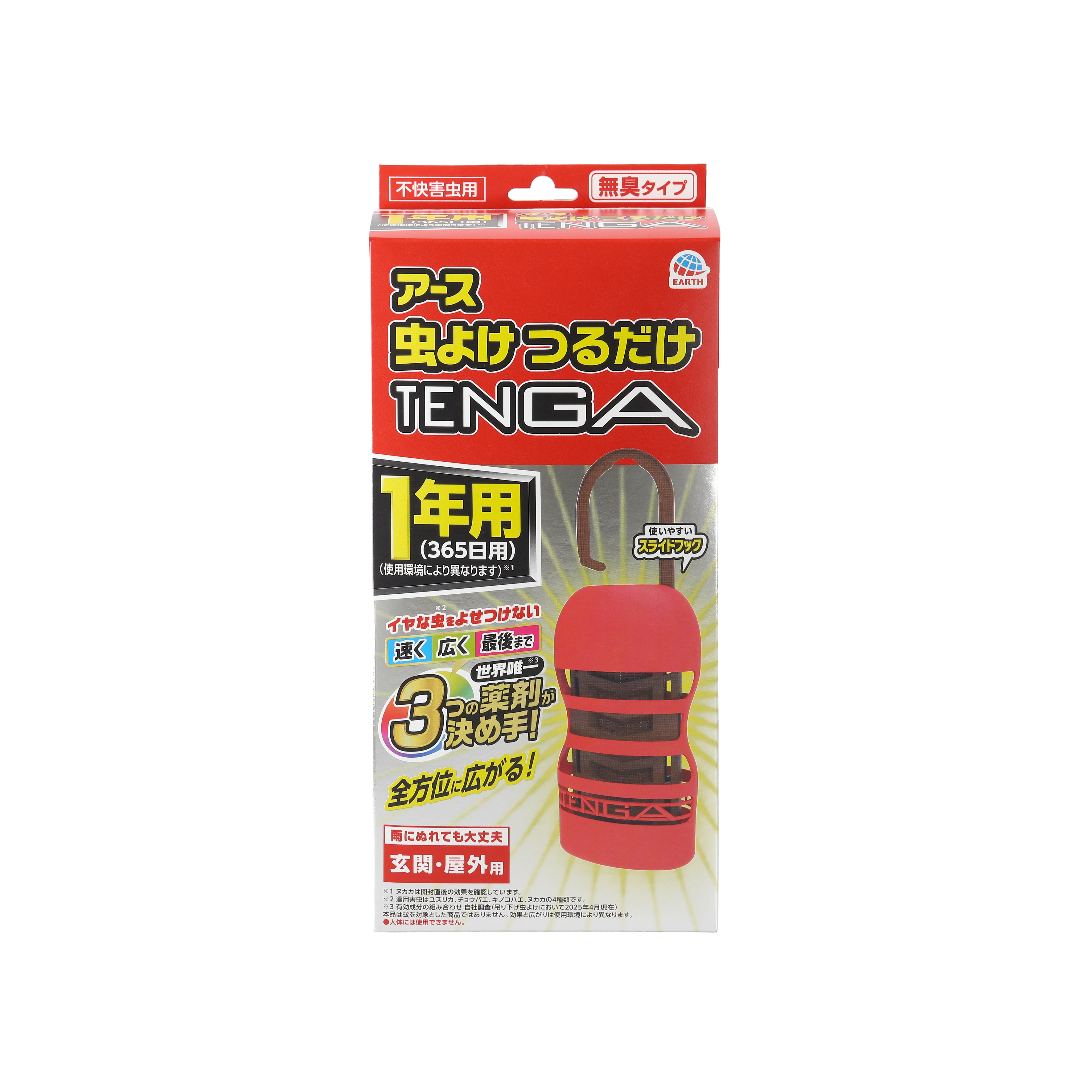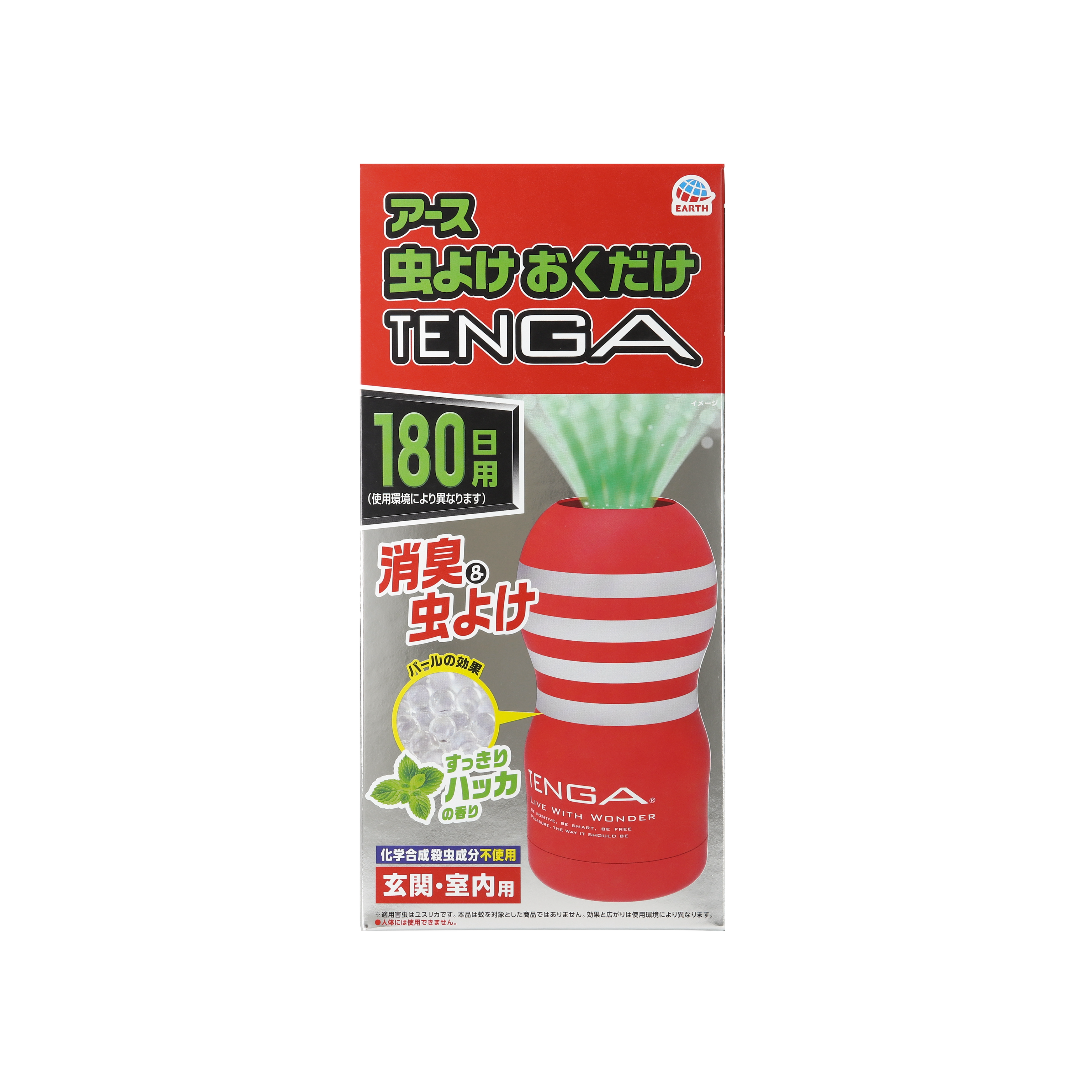 本製品はアース製薬の確かな虫ケア技術と、TENGAのアイコニックな存在感を融合。玄関や窓際に設置することで、物理的な“虫”を防ぐだけでなく、「悪い虫(望まない訪問者・厄介なセールス・災い)」も遠ざけるという、ダブルミーニングのコンセプトを備えた実用的かつ遊び心溢れるプロダクトです。