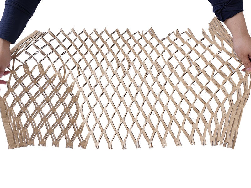 本製品はダンボールを自動で網の目状に加工し緩衝材が作れる段ボールシュレッダーです。