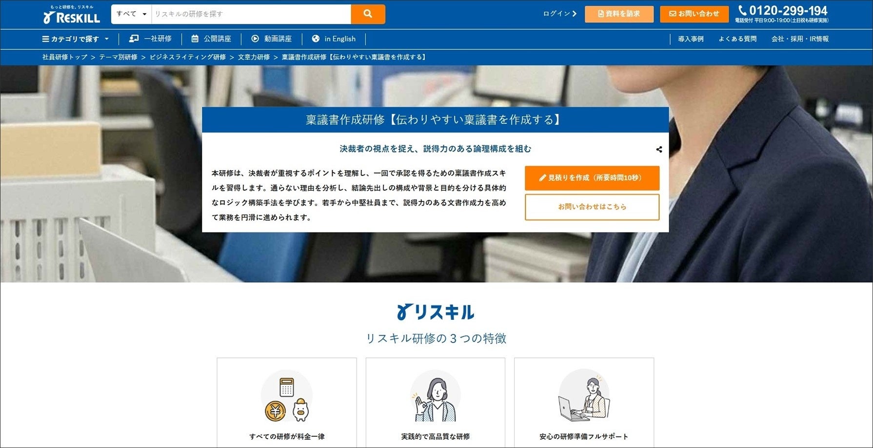 株式会社リスキルは、研修を実施しやすい環境づくりのため、ビジネス研修が料金一律という明瞭な価格体系で研修を提供しています。今回リリースした稟議書作成研修においても、時間数と人数に基づいた見積りを即時に算出可能です。日本全国およびオンラインでの実施に対応しており、企業ごとのカスタマイズにも追加料金なしで対応することで、各組織の課題解決を支援します。