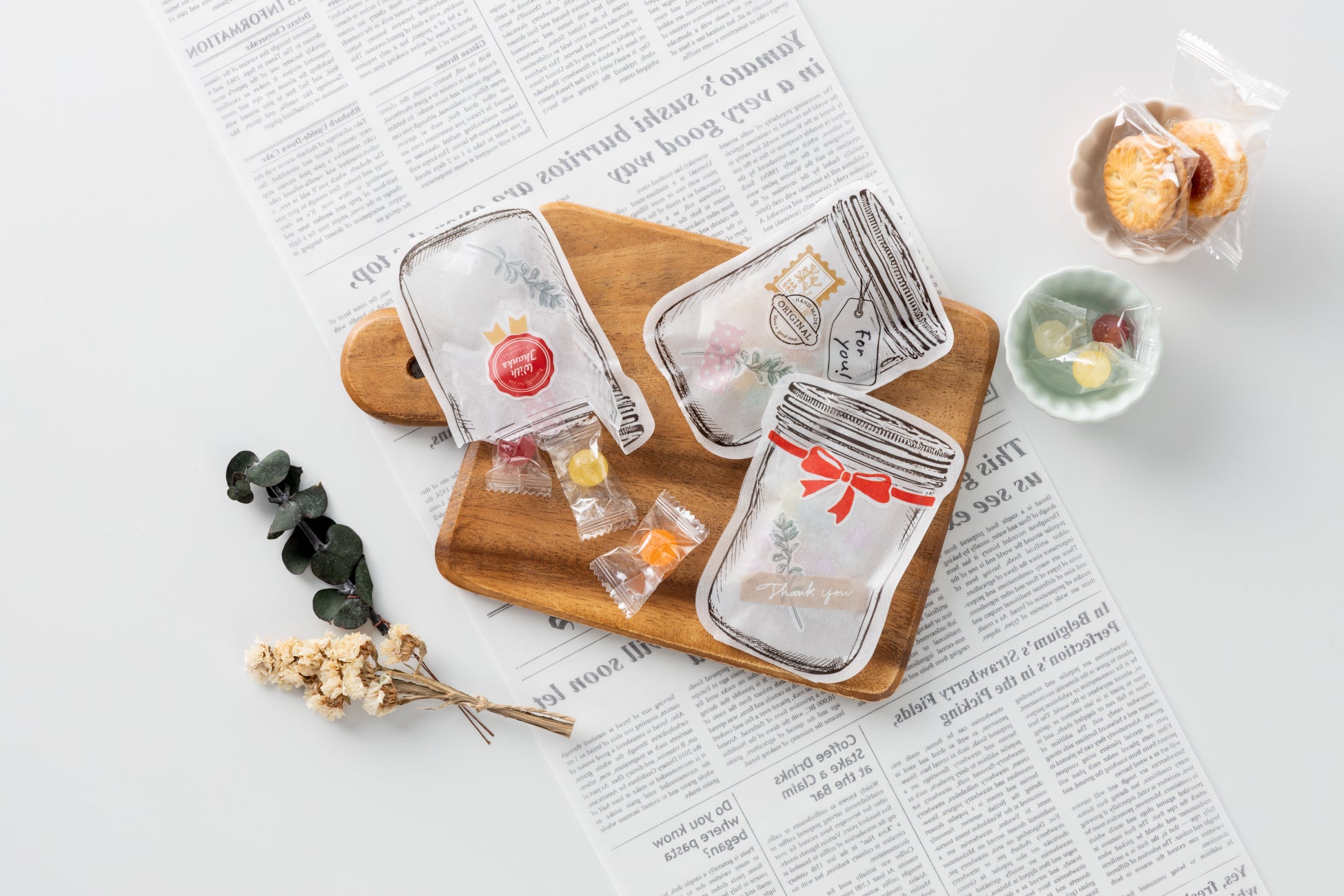 透け感のあるトレーシングペーパーで作ったシール式ラッピングシートです。デザインの種類は、カバン、キャニスター、マンガの3品で、それぞれ本体のシートをベースに、付属シールを好きな位置に貼ってオリジナルのギフトに仕上げることができる仕様です。半透明の素材は、中身がうっすらと見えながらも、デコレーション次第でカラフルな見た目にアレンジできる自由さが支持され、文具類や雑貨類などで人気です。商品名はお菓子や小物を贈る側の「ささやかな」気持ちを表現してと名付けました。日常のプチギフトのほかに、バレンタインやハロウィンのシーズンイベントなど、さまざまなシーンでご使用いただけます。