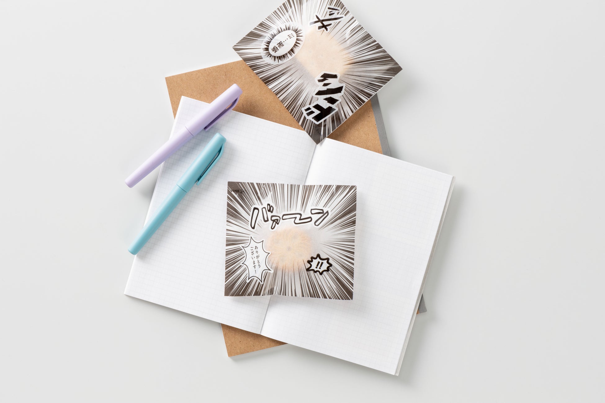 特長:漫画にでてくる集中線イラストがベースの「一コマ漫画」のデザイン。ギフトが漫画の一コマに大変身!ほかにはないラッピングができます。
