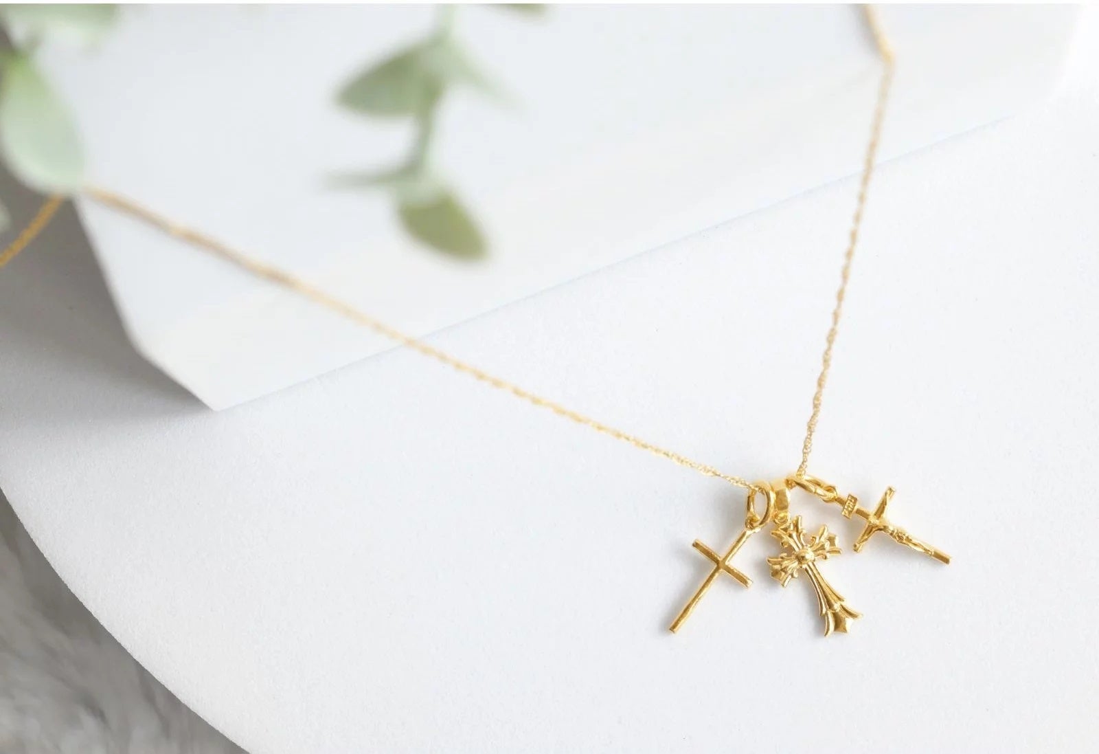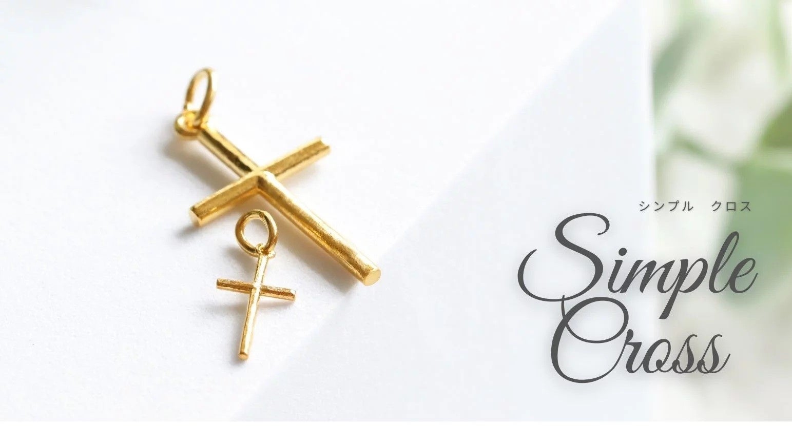 価値の高い素材“無垢の純金”で作った世界的に人気の高いクロスモチーフの格上げジュエリー。