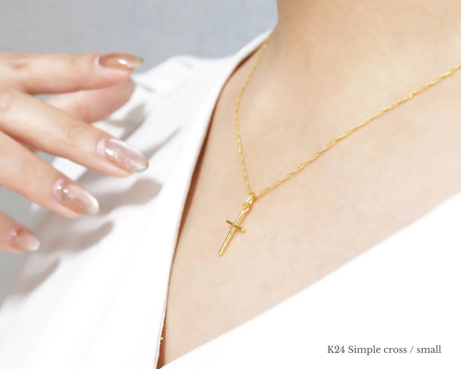 【【K24純金】のクロスペンダント。無垢な純金で作る本格派クロスモチーフのジュエリー。】