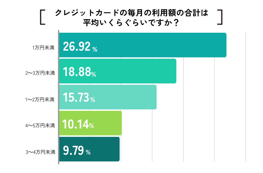 クレジットカードの毎月の利用額平均合計は、「1万円未満」が26.92%と最も多かった。