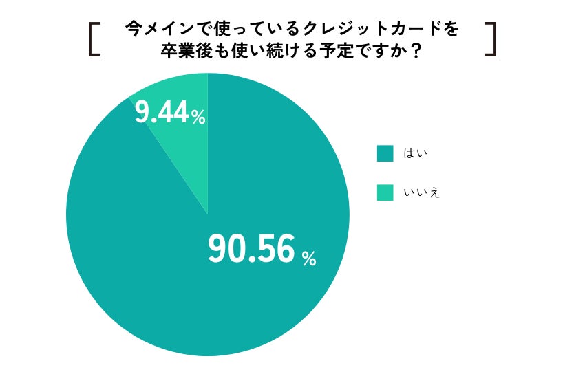 今メインで使っているクレジットカードを卒業後も使い続ける学生は、90.56%と全体のほとんどを占めていた。