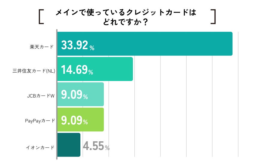 学生がメインで使っているクレジットカードの中で最も多かったのは、「楽天カード」の33.92%だった。