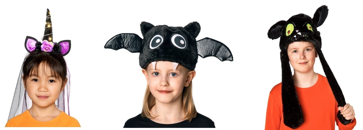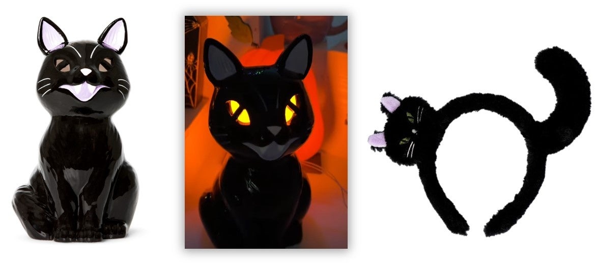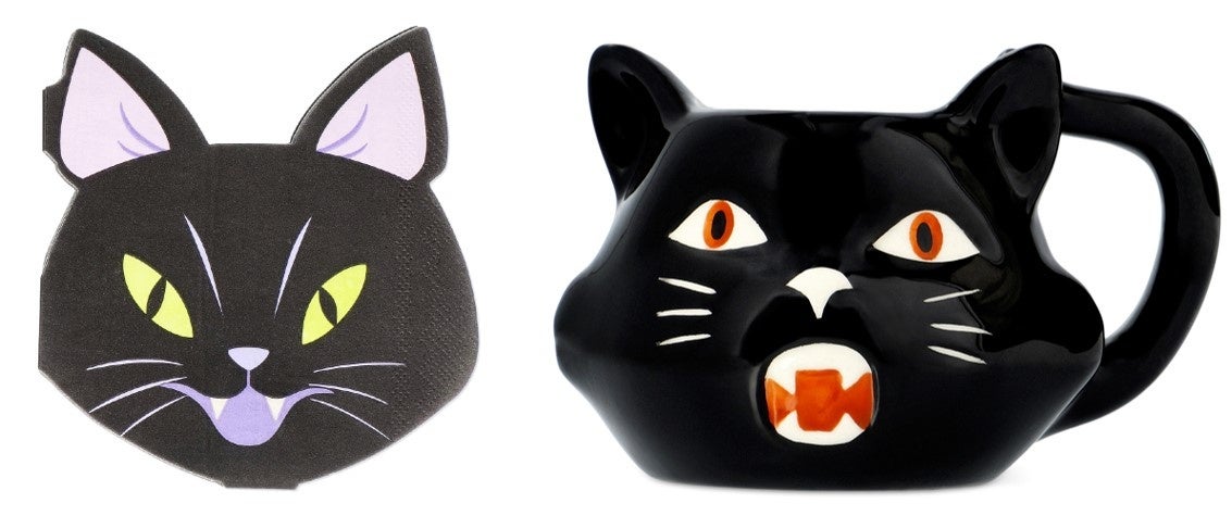 クロネコにも表情がいろいろあるんです。いかにもハロウィンらしい顔がキュート。パーティーにも普段使いにもどうぞ