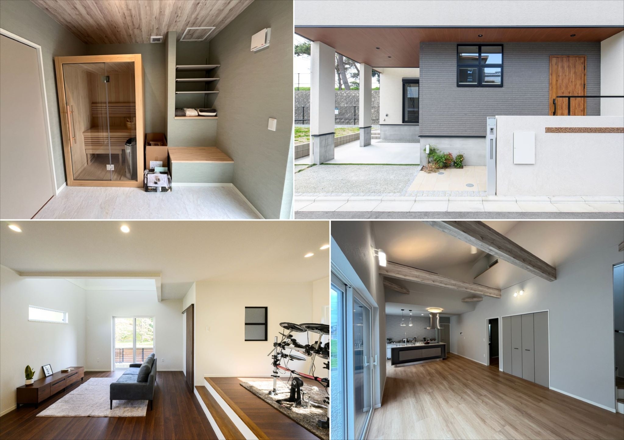特に注目すべきは、サウナを備えたモデルハウス、リビングにステージを設けた家、効率的な家事動線を持つ家、インナーガレージを擁する家、カフェスタイルの居間を持つ家など、独自性と機能性を兼ね備えた住空間です。