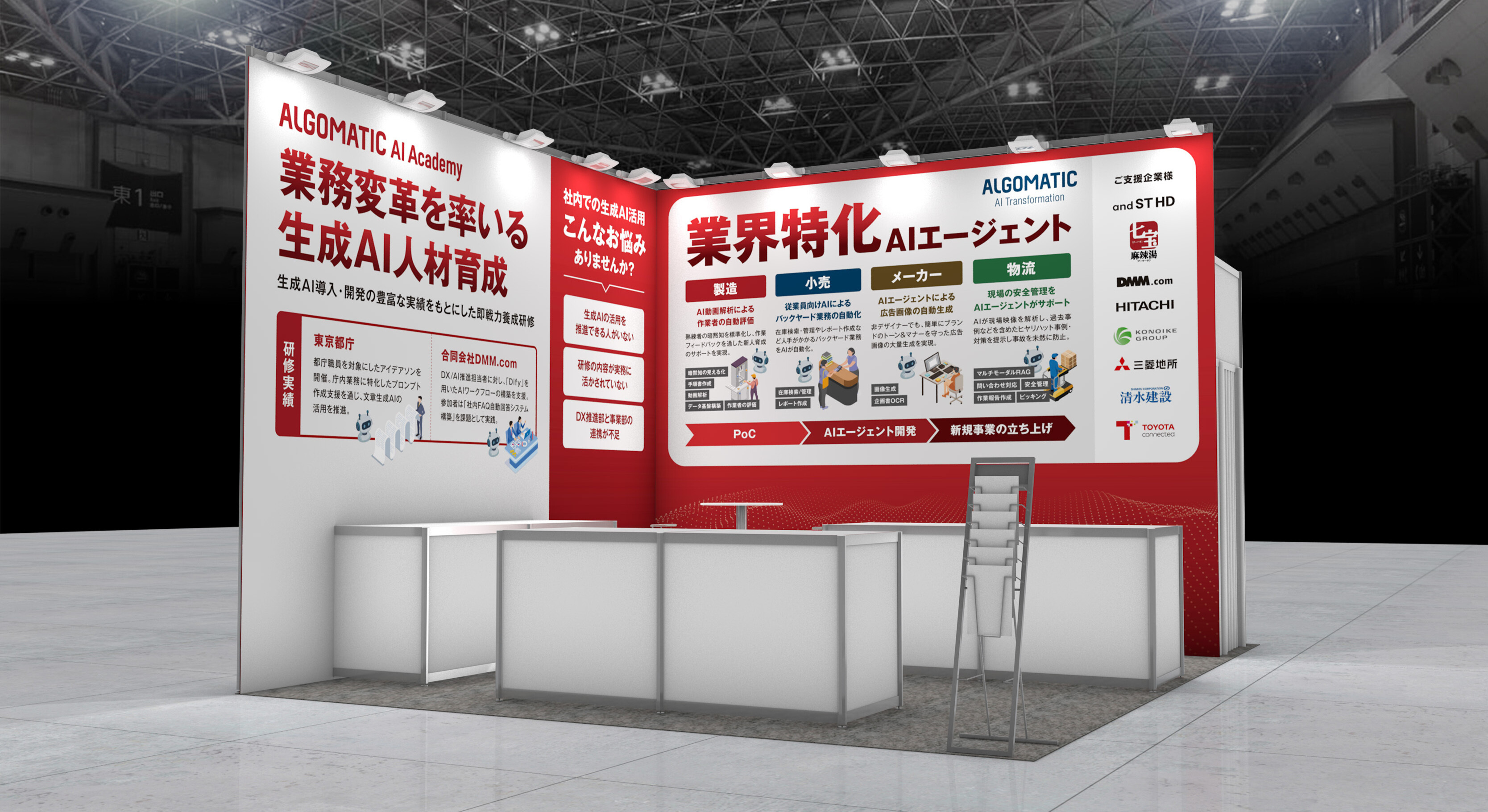 Algomaticのブースでは、業界特化AIエージェントの最新事例をテーマにデモンストレーションを交えてご紹介します。製造・物流・金融・流通など各業界に最適化された具体的な活用事例のほか、AIエージェントを短期間で構築できる独自の仕組みや、生成AI時代に不可欠な人材育成サービスなど、企業の持続的なAI活用を後押しする取り組みを幅広くお伝えします。