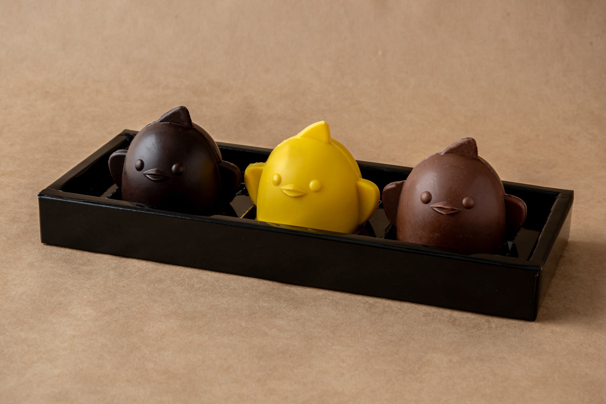 愛知県の地元食材「名古屋コーチン」の卵を使ったプリンを、バニラの香り豊かなババロアで包み込み、粉末状にしたスポンジをまとわせた、ふんわり「ひよこ」の形に飾り付けた生スイーツです。名古屋駅構内の2店舗と、愛知県春日井市内の製造工房併設店舗で販売しています。