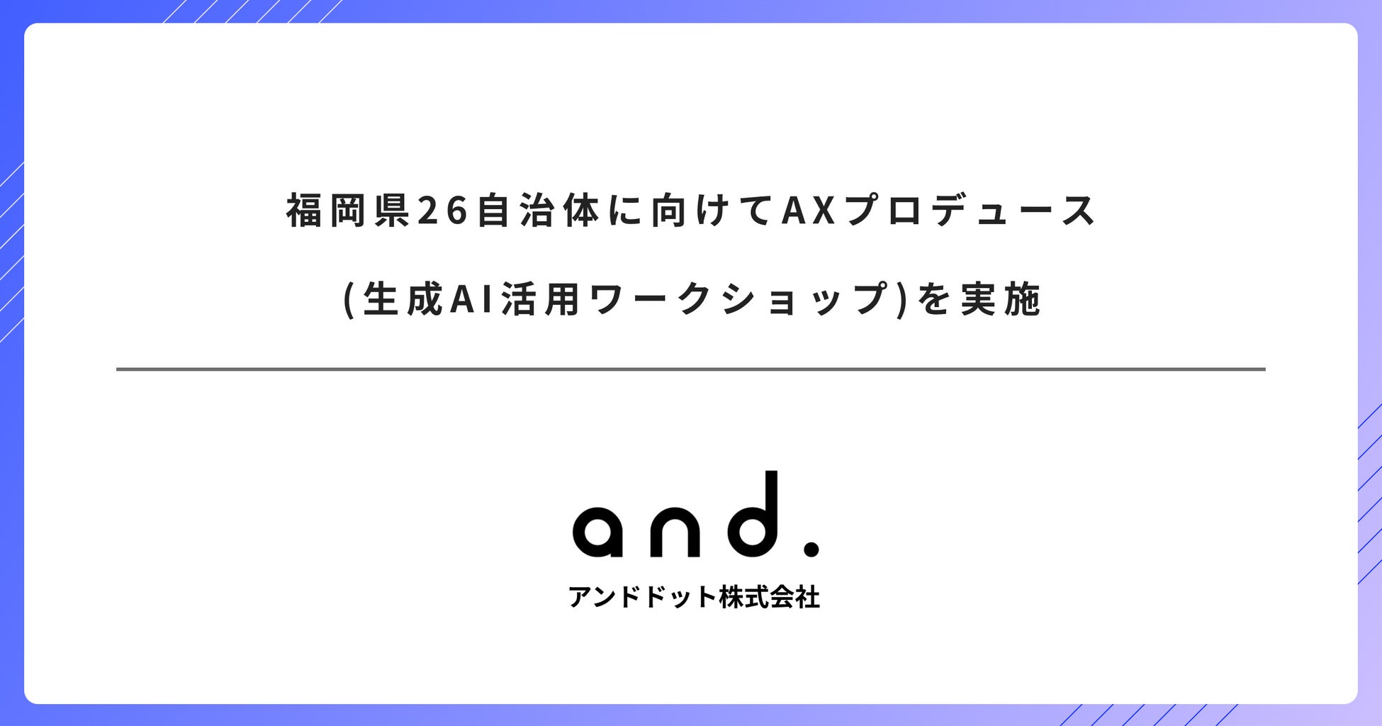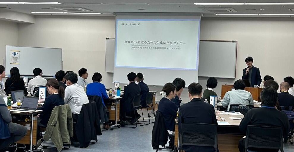 生成 AI ソリューション事業を展開するアンドドット株式会社(本社:東京都渋谷区、代表取締役:茨木 雄太、以下:アンドドット)は、この度、福岡県市町村職員研修所にて「自治体DX推進のための生成AI活用ワークショップ」を、15市11町村、計26団体、41名の福岡県内自治体職員を対象に実施いたしました。