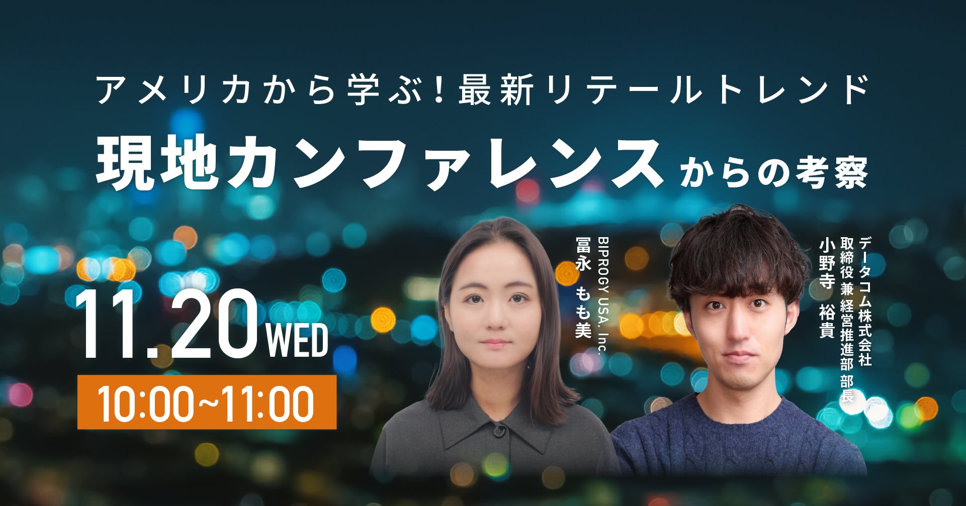 株式会社データコムはBIPROGY USA, Inc.と共に、「アメリカから学ぶ最新リテールトレンド」をテーマにセミナーを実施します。本セミナーでは、アメリカのリテール向けカンファレンスGrocery ShopやShoptalkからの学びをもとに、日本の状況も踏まえながら今後のトレンドを考察していきます。一歩先を行くアメリカのオムニチャネル、リテールメディアの現在地などについてもお話しますので、これらのテーマに関心のある方は是非お申し込みください。