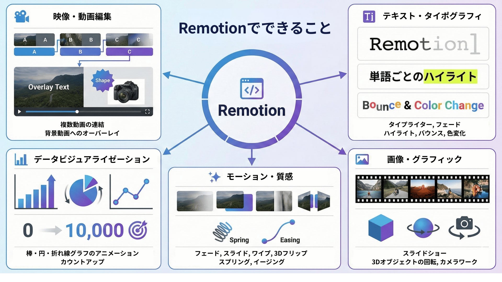動画制作フレームワーク「Remotion」が、AIエージェント向けの手順書「Skills」を公開しました。これにより、Claude CodeなどのAIエージェントに自然言語で指示を出すだけで、アニメーション付きの高品質な動画をプログラムから生成することが可能になりました。