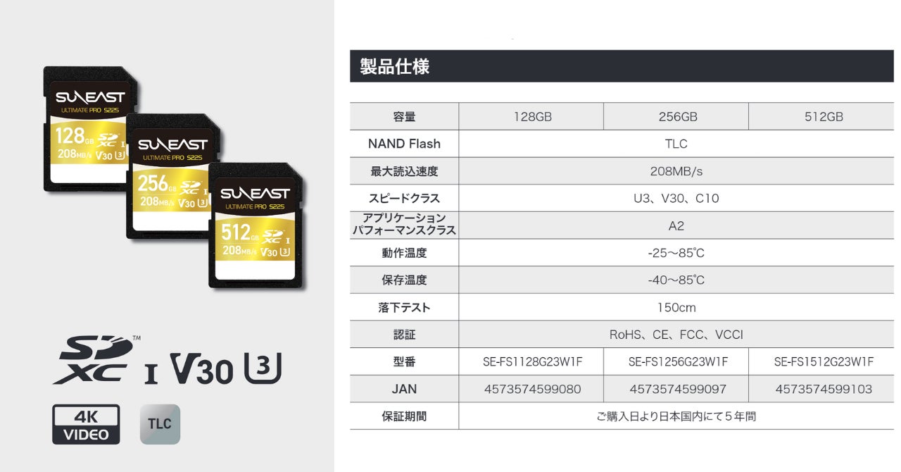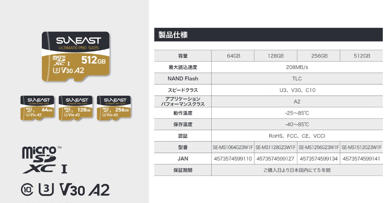 microSDXC UHS-I V30 Card S225 GOLD series、SDXC UHS-I V30 Card S225 GOLD seriesの2種類を発売いたします。