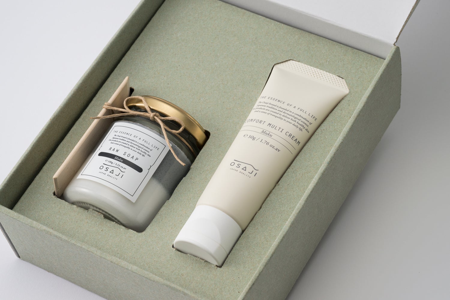 OSAJIで人気の半熟洗顔石鹸ローソープと顔にも体にも使えるマルチクリームのギフトセット。