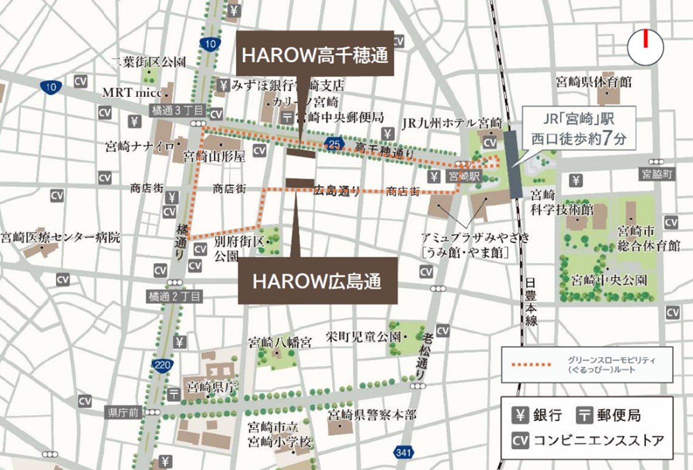 ※1 「HAROW」とは、2024年11⽉23⽇(土)に一部先行開業した「HAROW広島通(宮崎市広島一丁目5-30)」および、2025年4月18日(金)に開業した「HAROW高千穂通(宮崎市広島一丁目5-13)」の総称です。