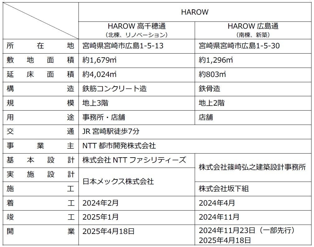 NTT 都市開発株式会社(本社︓東京都千代⽥区、代表取締役社⻑ 池⽥ 康)は、宮崎市広島一丁目にて一部先行開業しておりました、複合商業施設「HAROW(ハロウ)※1」(以下、「本施設」)が本日、2025年4月18日(金)にグランドオープンしたことをお知らせします。