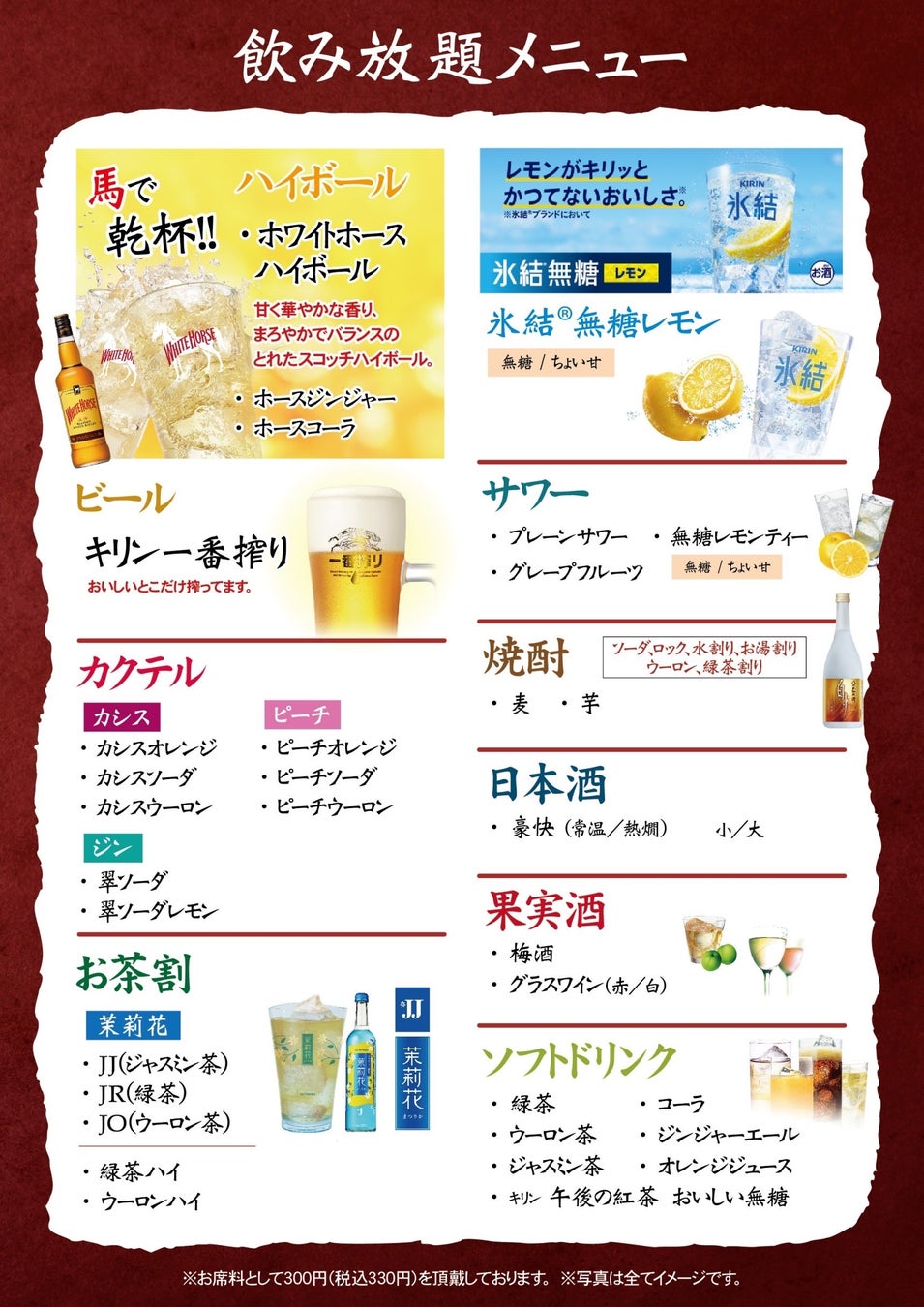 本プランの特徴は、お一人様 5,000円(税込)という驚きの価格で、馬肉の魅力を余すところなく堪能できるという点です。さらには、食べ放題に加え、お値段変わらず飲み放題まで楽しめるという贅沢な内容となっております。
