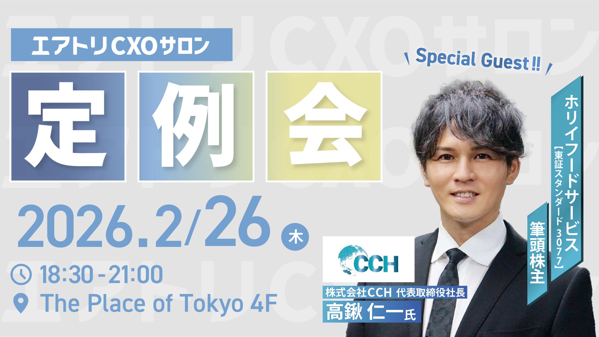 高鍬仁一が、2026年2月26日に開催された「エアトリCXOサロン 定例会」にスペシャルゲストとして登壇し、約100名の経営者に向けてゲスト講演を実施しました。当日はCCHの事業成長の裏側や、営業・マーケティング・M&Aを掛け合わせた拡大戦略を共有し、大きな反響を呼びました。