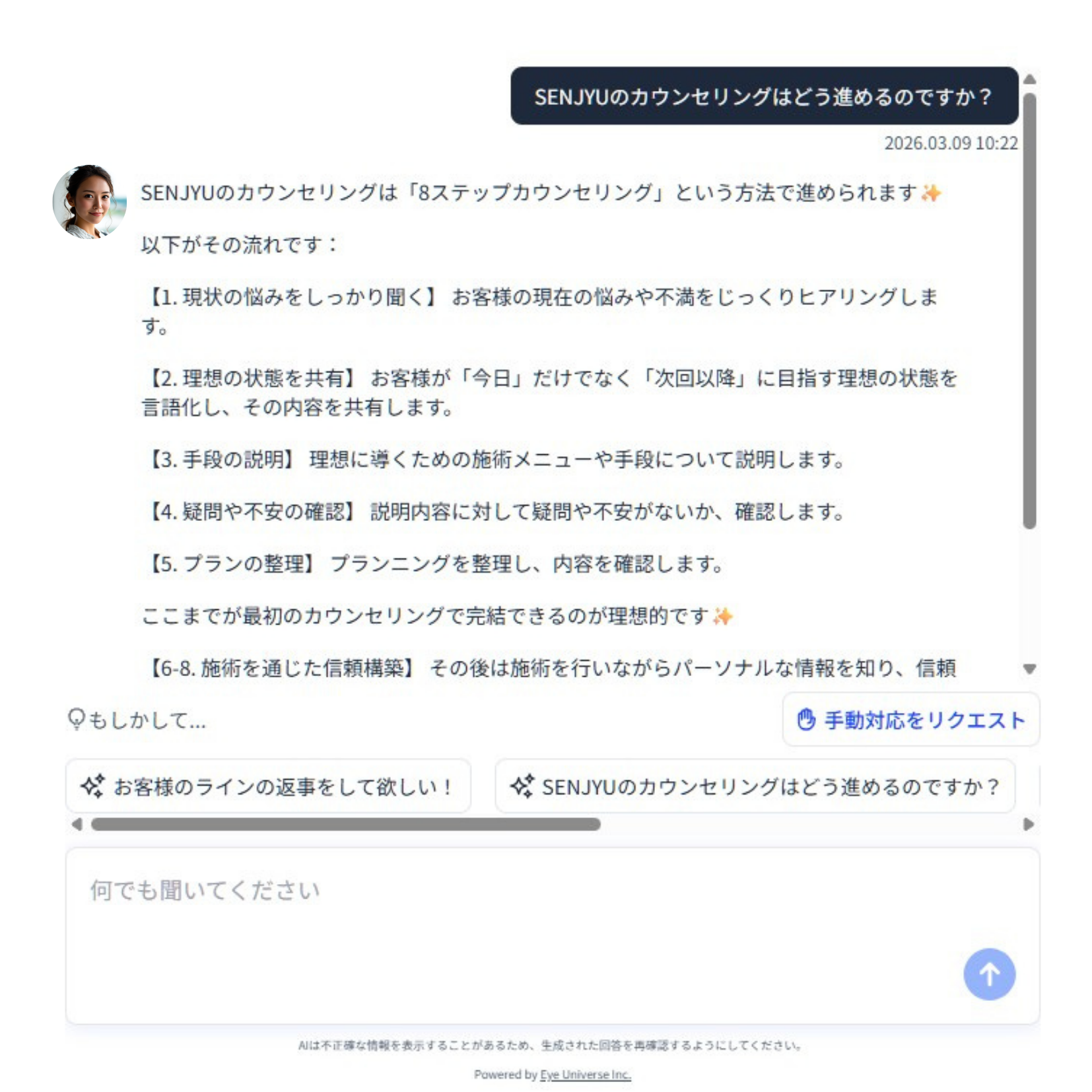 株式会社EyeUniverse(所在地:東京都港区、代表取締役:森越道大、以下「当社」)は、美容サロン向けAIプラットフォーム「iProducer Studio」を提供しております。