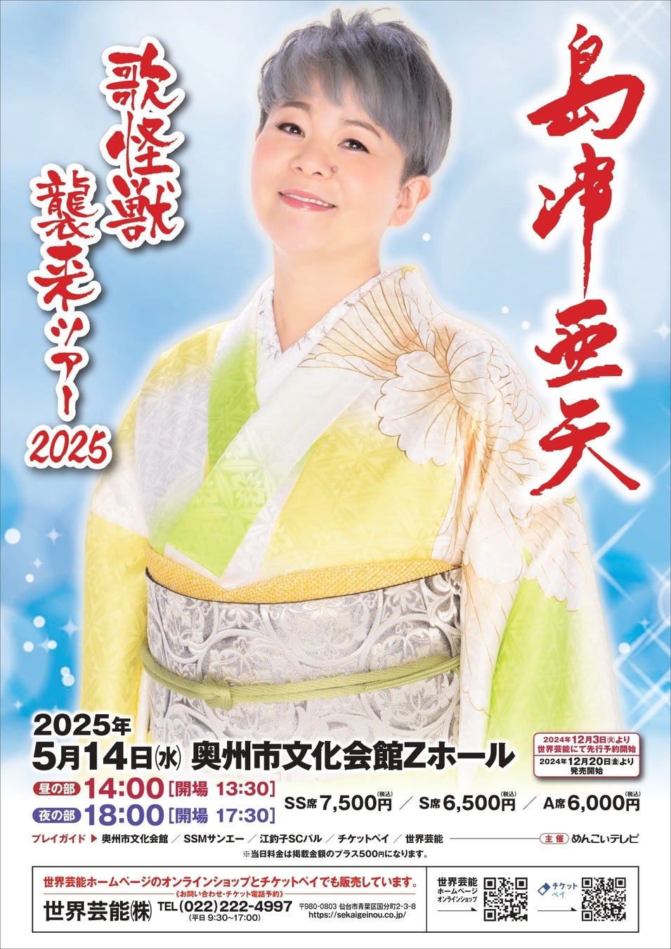 『島津亜矢 歌怪獣襲来ツアー2025』奥州市文化会館Zホール公演を「チケットペイ」にて申し込み受付開始!