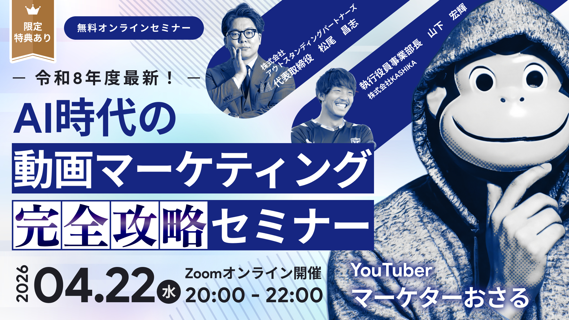 YouTube50万人のおさる氏ら3名が登壇、「AI時代の動画マーケティング完全攻略セミナー」を4月22日に無料オンライン開催