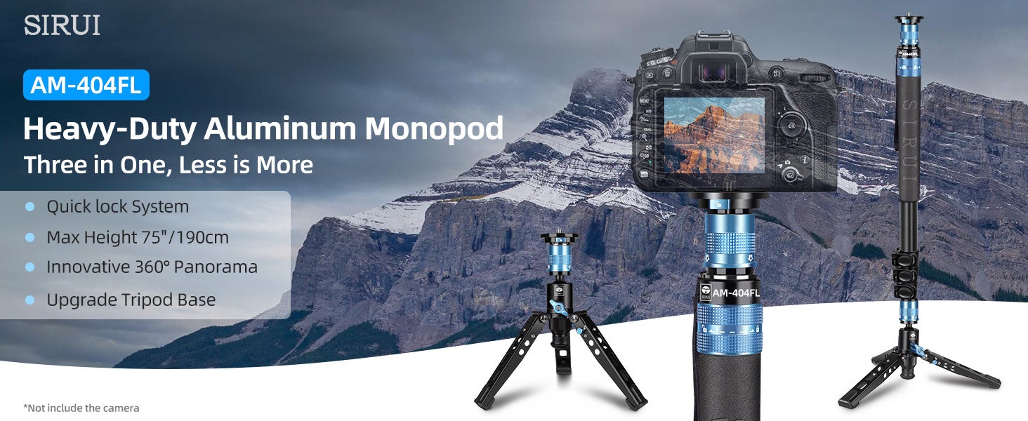 SIRUI AM-404FL カメラ一脚 足付き 74.8インチ アルミニウム トラベルビデオ一脚 取り外し可能なベース付き スリムで軽量 最大荷重26ポンド 360°パノラマパン 4セクション Canon Nikon Sony用