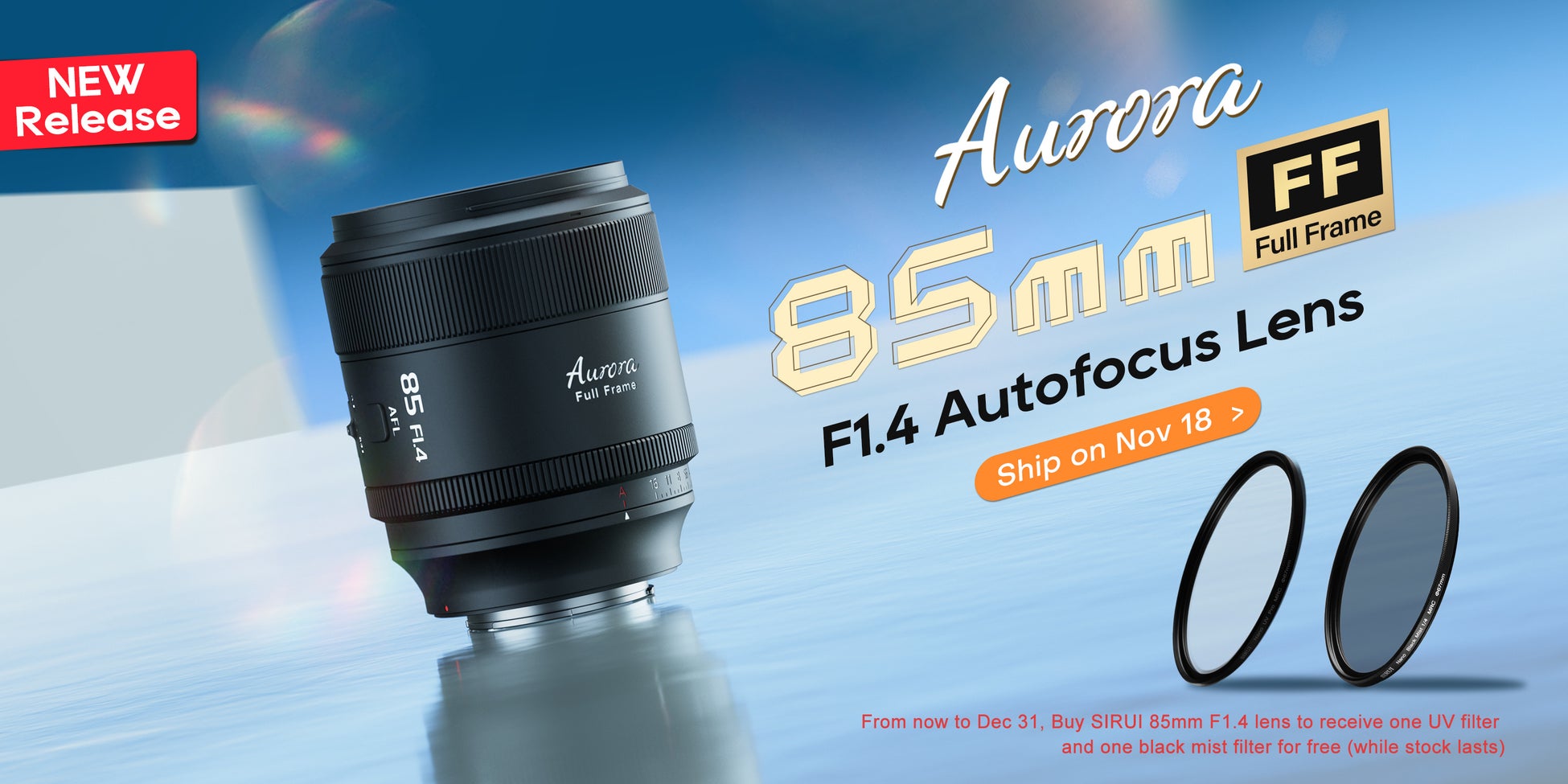 現在から12月31日まで、SIRUI Aurora 85mm F1.4 レンズを購入すると、UVフィルター1個とブラックミストフィルター1個が無料でプレゼント!(在庫限り、限定オファー)