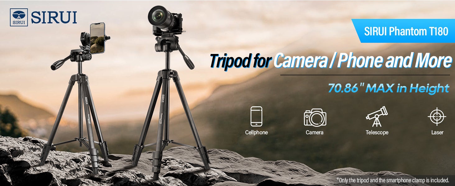SIRUI カメラと携帯電話用三脚、高さ70インチのカメラ三脚スタンド、携帯電話ホルダーとトラベルバッグ付き、携帯電話、DSLR、レーザーレベル、ビデオカメラ、スポッティングスコープ、屋外撮影用 Phantom-T180