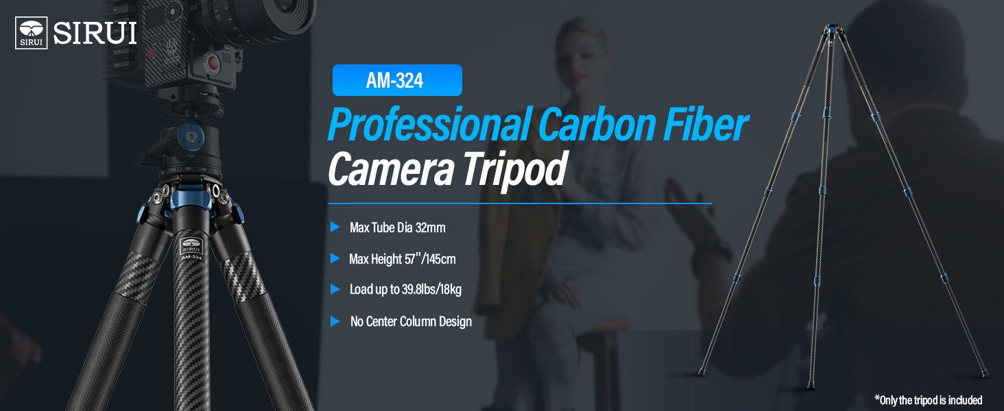 SIRUI AM-324 コンパクトプロフェッショナルカメラ三脚 最大高さ145cm 10層カーボンファイバー 最大チューブ径32mm 最大荷重18kg 4段伸縮 ミラーレスカメラ・デジタル一眼レフ対応