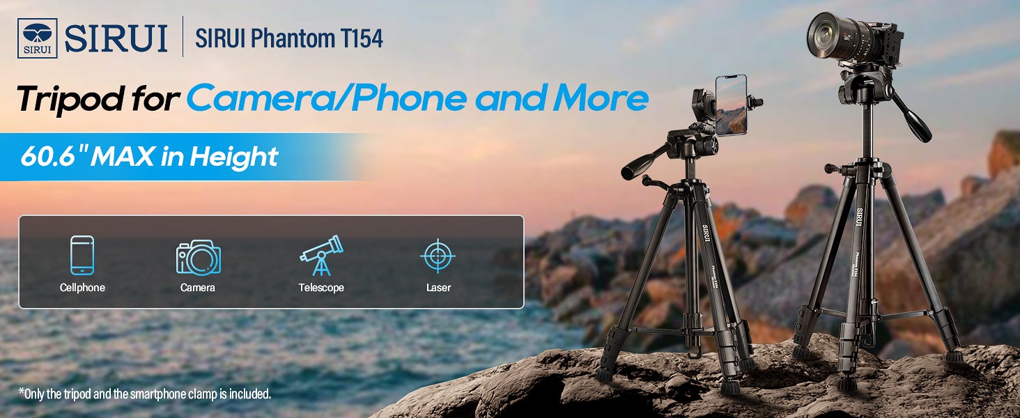 SIRUI カメラ三脚、電話クランプ付き、60インチ三脚スタンド、トラベルバッグ付き、iPhone、ミラーレス、DSLR、ビデオカメラ、スポッティングスコープ、屋外用レーザーレベル Phantom-T154