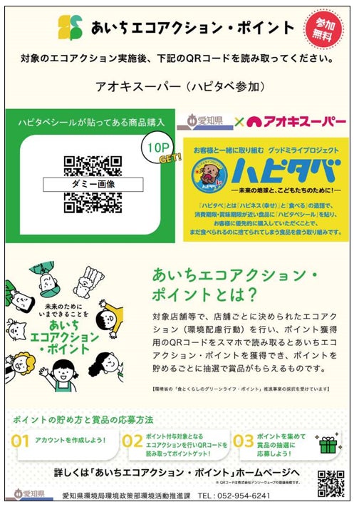 未来の地球のために、今!できることを♪愛知県の環境配慮活動『あいちエコアクション・ポイント』とアオキスーパーの食品ロス削減活動『ハピタベ』の連携スタート!
