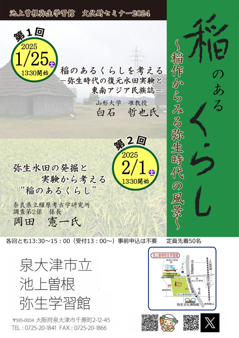 大阪府泉大津市(市長:南出賢一)は、泉大津市の歴史や文化の魅力を、専門家から学ぶ文化財セミナーを実施しています。2025年1月25(土)と2月1日(土)に、泉大津市立池上曽根弥生学習館において、「稲のあるくらし~稲作からみる弥生時代の風景~」を開催します。