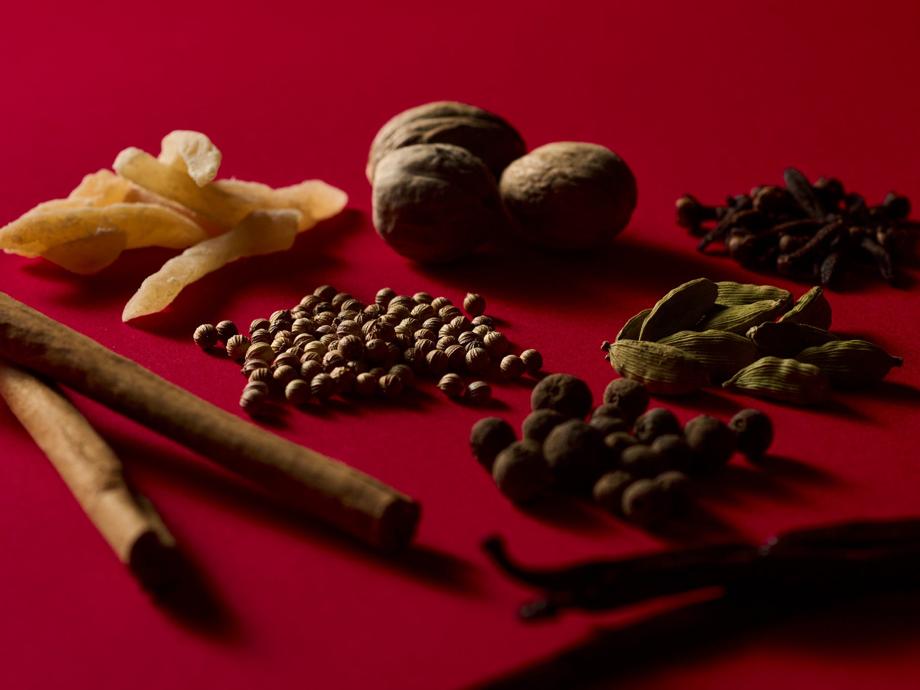 ガナッシュとホットクリームミルクが混ざり合い美しいマーブル模様を描いたところに、選び抜いた7種のパウダーを調合した、横浜バニラオリジナルのウィンタースパイスをじっくり丁寧になじませます。力強いスパイスが、優しいチョコレートラテを華やかに彩ります。