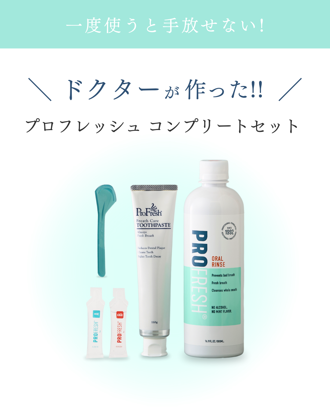 Profresh(プロフレッシュ)は、オーラルケア先進国アメリカで誕生した口臭ケアに特化したオーラルケアブランドです。開発者 Dr.Jon L . Richter(リクター博士)は1992年にアメリカで初めて「口臭治療を専門とするクリニック」を設立し、口臭の診断と治療に取り組んできました。