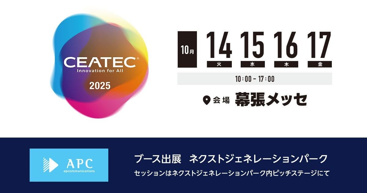 株式会社エーピーコミュニケーションズ(本社:東京都千代田区、代表取締役:内田武志、以下「当社」)は、2025年10月14日(火)〜17日(金)に幕張メッセにて開催される「CEATEC 2025」に、データ分析や需要予測、在庫管理、集計作業などを誰でも自然言語で「聞くだけ」で実現できるAIソリューションを出展します。(当社ブース:ホール6、小間番号:6H016)