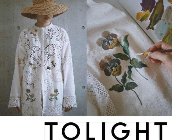 【特別施策】8/19(金)〜8/21(日)の期間中、デザイナーによるハンドペイントのオーダーサービス、TOLIGHTオリジナルのヴィンテージ生地を使用したシャツなどをご用意。お好きな場所にフラワーモチーフをペイントいたします。モチーフメニューの中から、位置や色などを選んでカスタムしていただけます。1日限定5名さままで。29,700円(税込)〜(価格はモチーフの数により上下します)