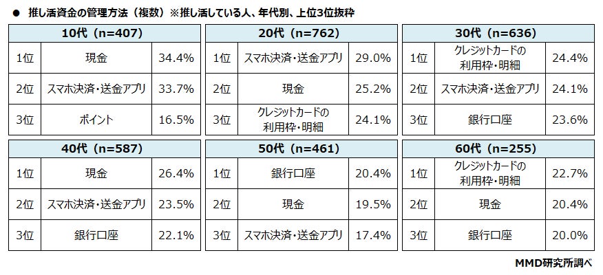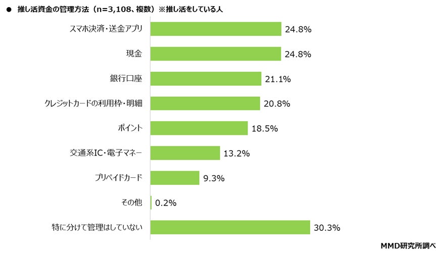 推し活資金の管理方法は「スマホ決済・送金アプリ」「現金」がトップ、次いで「銀行口座」
